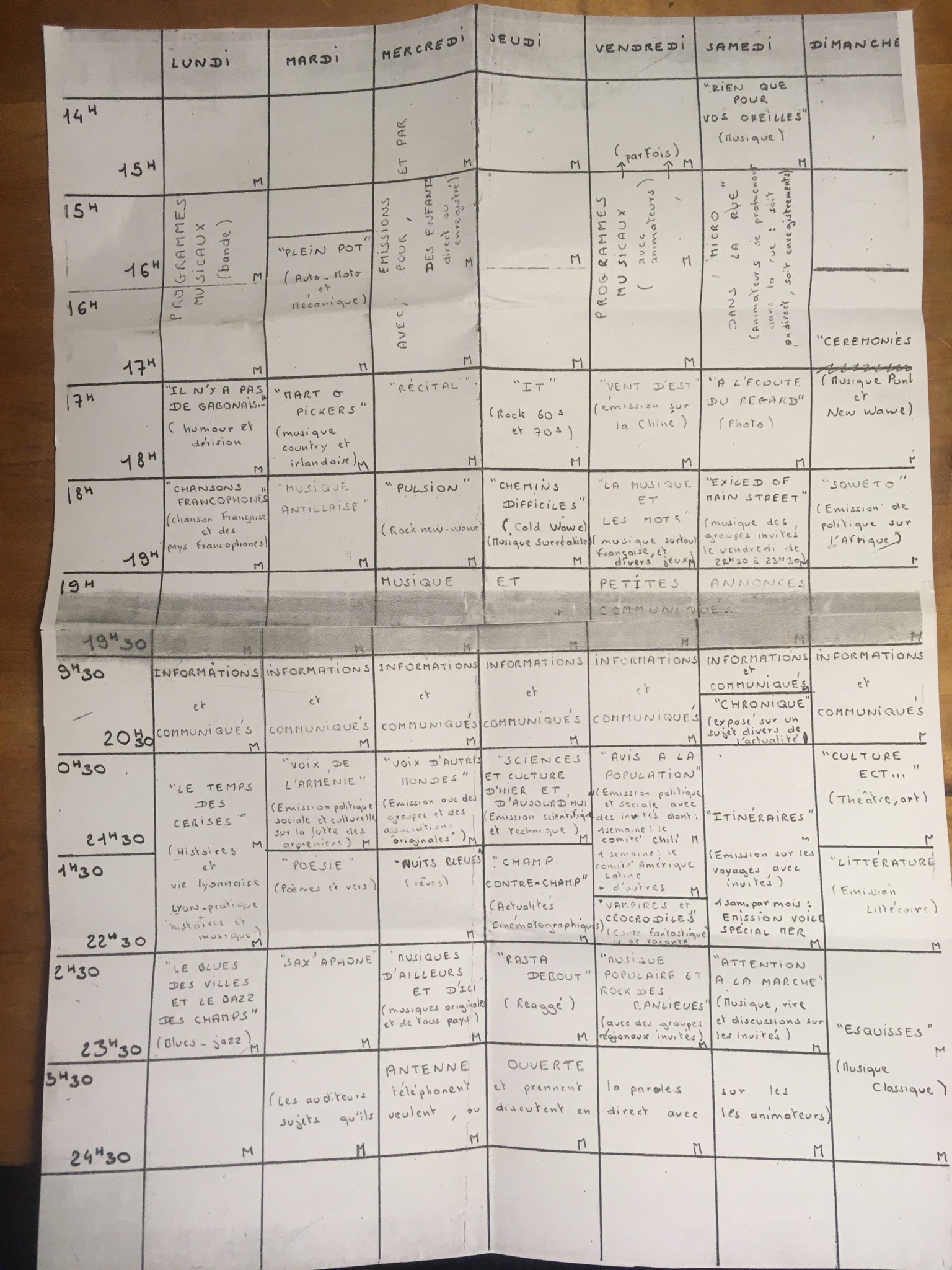 Cette semaine on revient donc sur les premières années de Radio Canut, de la radio pirate à son installation dans un appart des pentes de la Croix Rousse après l’ouverture des ondes en 1981 et la légalisation de dizaines de radios libres.
