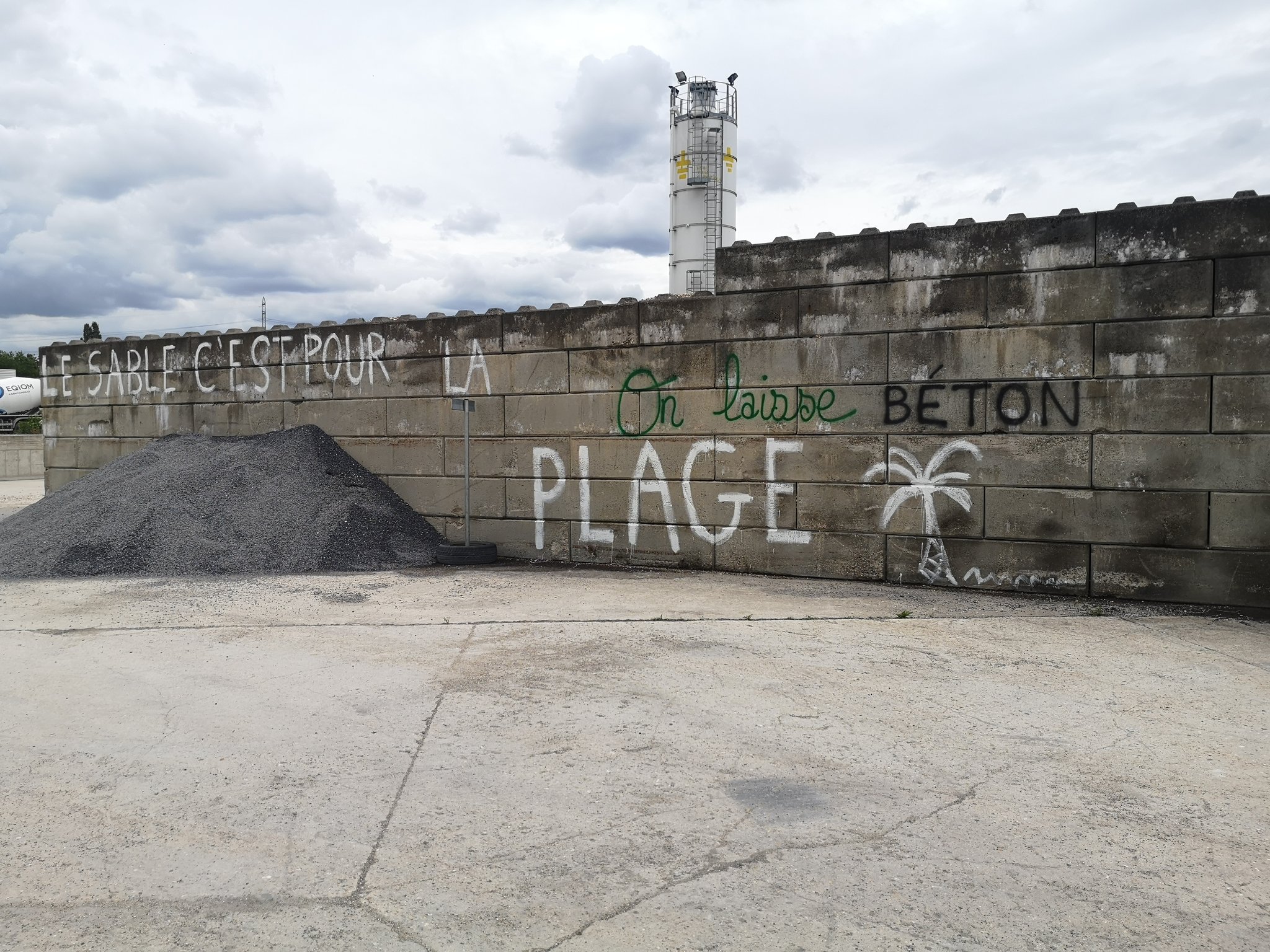 Depuis mardi 29 juin, au moins 4 sites de production de béton sont occupés, bloqués et mis à l’arrêt en région parisienne. Propriété de Lafarge et Equiomgroup, ils sont au cœur de l’approvisionnement de l’industrie de la construction. Le BTP et son béton bien lisse font partie des premiers émetteurs de CO2 dans le monde, les principaux responsables de l’artificialisation des sols, de la destruction des terres fertiles.