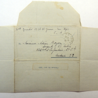 Visuel : Une enveloppe ouverte. Une marraine de guerre de la première guerre mondiale, Henriette Renaudier, Oran, Algérie, écrit à Monsieur A. Bozon, sergent, 3ème section, 34ème régiment d’infanterie, 2ème compagnie, secteur53