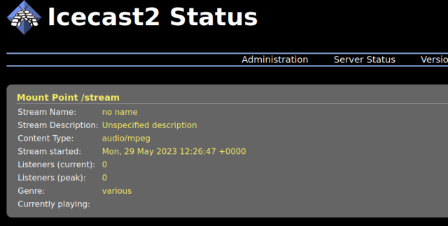 C’est la page par défaut de Icecast. Mais lorsqu’un stream est en cours vous aurez quelque chose comme ça :