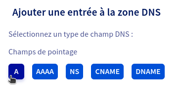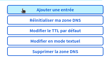 Pour ce faire rendez vous sur votre compte OVH, puis cliquez sur le nom de domaine concerné, puis sur ‘Zone DNS’. A droite vous trouverez ce menu :